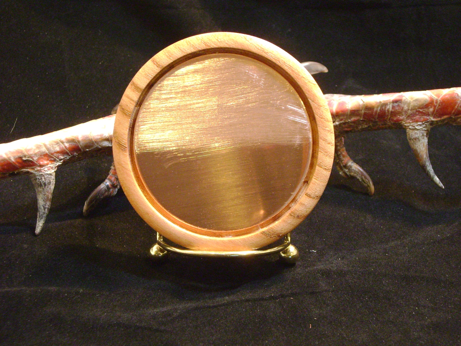 3.0" Diameter Copper surface with a glass sound board in a Honey Locust wood pot. This pot has beautiful grain and coloration throughout the call. Great sound built into this call. This by far is the best copper friction call on the market today. Many turkeys have been fooled by this call. Sharp breaking yelps with the best purring you ever heard from a friction call. Great cutts and clucks are a wonderful follow up to your calling sequence. The 3" copper calls are slightly higher pitch and plenty of raspy notes. Using different striker woods and weights will change the sounds up and sound like a different bird. Heavy dense wood strikers will lower pitch and lighter softer wood will have higher pitch and clearer sounds. Handcrafted striker and call bag are included.