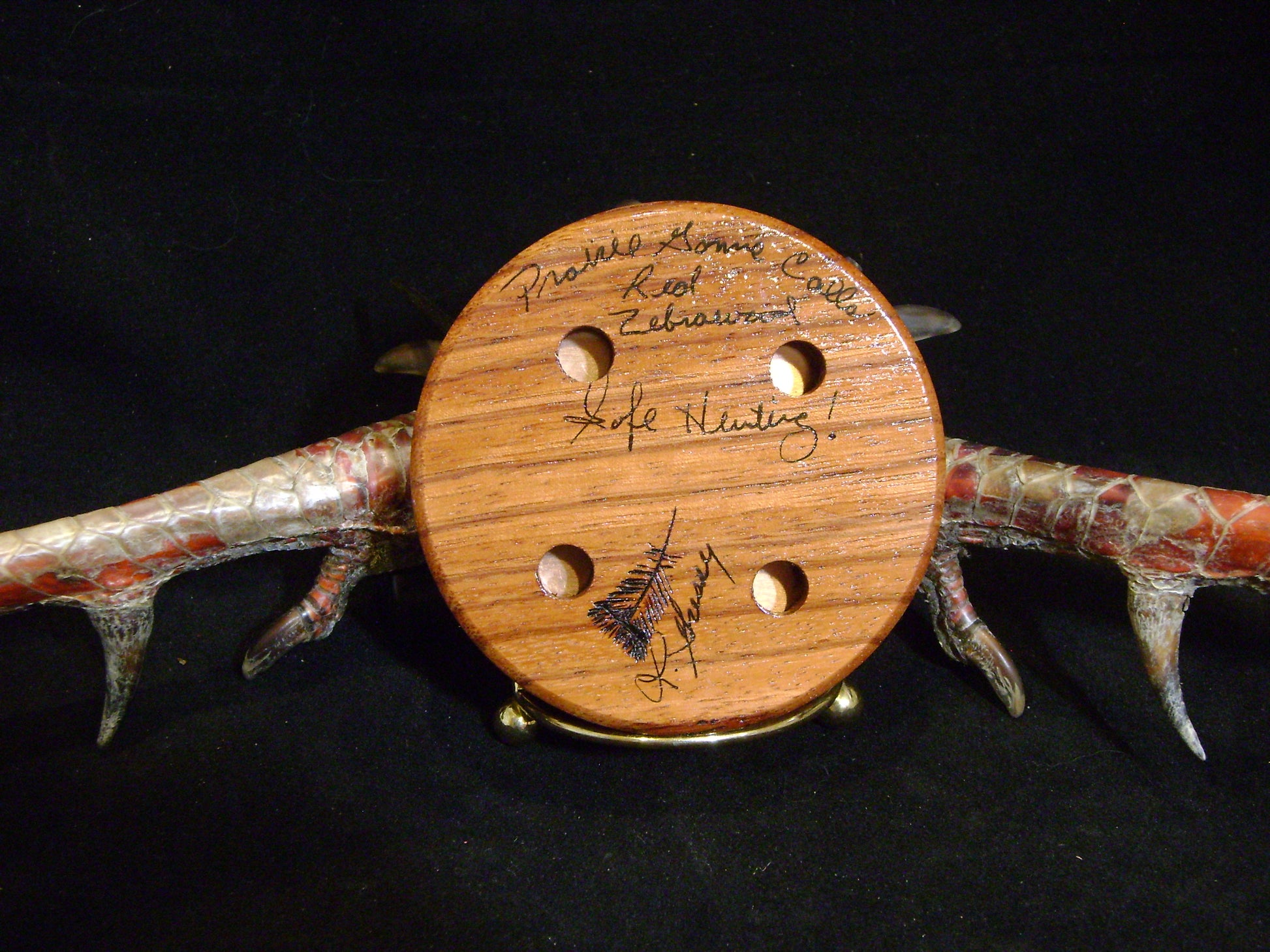 3.0" Diameter Copper surface with a glass sound board in a African Red Zebrawood pot. This pot has beautiful grain and coloration throughout the call. Great sound built into this call. This by far is the best copper friction call on the market today. Many turkeys have been fooled by this call. Sharp breaking yelps with the best purring you ever heard from a friction call. Great cutts and clucks are a wonderful follow up to your calling sequence. The 3" copper calls are slightly higher pitch and plenty of raspy notes. Using different striker woods and weights will change the sounds up and sound like a different bird. Heavy dense wood strikers will lower pitch and lighter softer wood will have higher pitch and clearer sounds. Handcrafted striker and call bag are included.