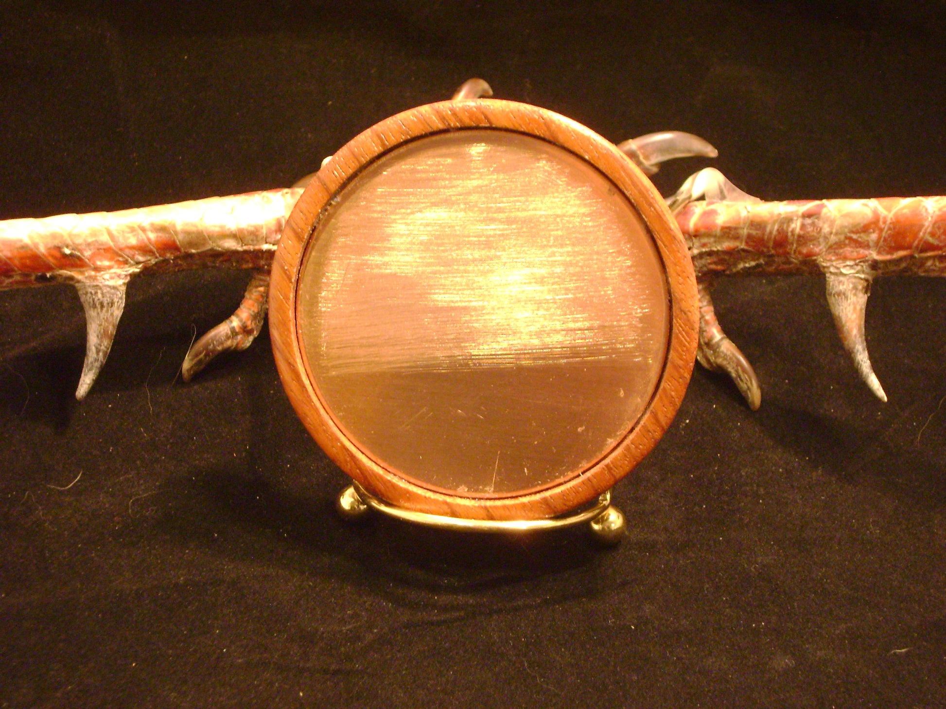3.25" Diameter Copper surface with a glass sound board. This call is made from very rare wood called Red Zebrawood. This pot has beautiful grain and coloration throughout the call. Great sound built into this call. The 3.25" copper calls are slightly lower pitch and deeper raspy notes. Using different striker woods and weights will change the sounds up and sound like a different bird. Heavy dense wood strikers will lower pitch and lighter softer wood will have higher pitch and clearer sounds.