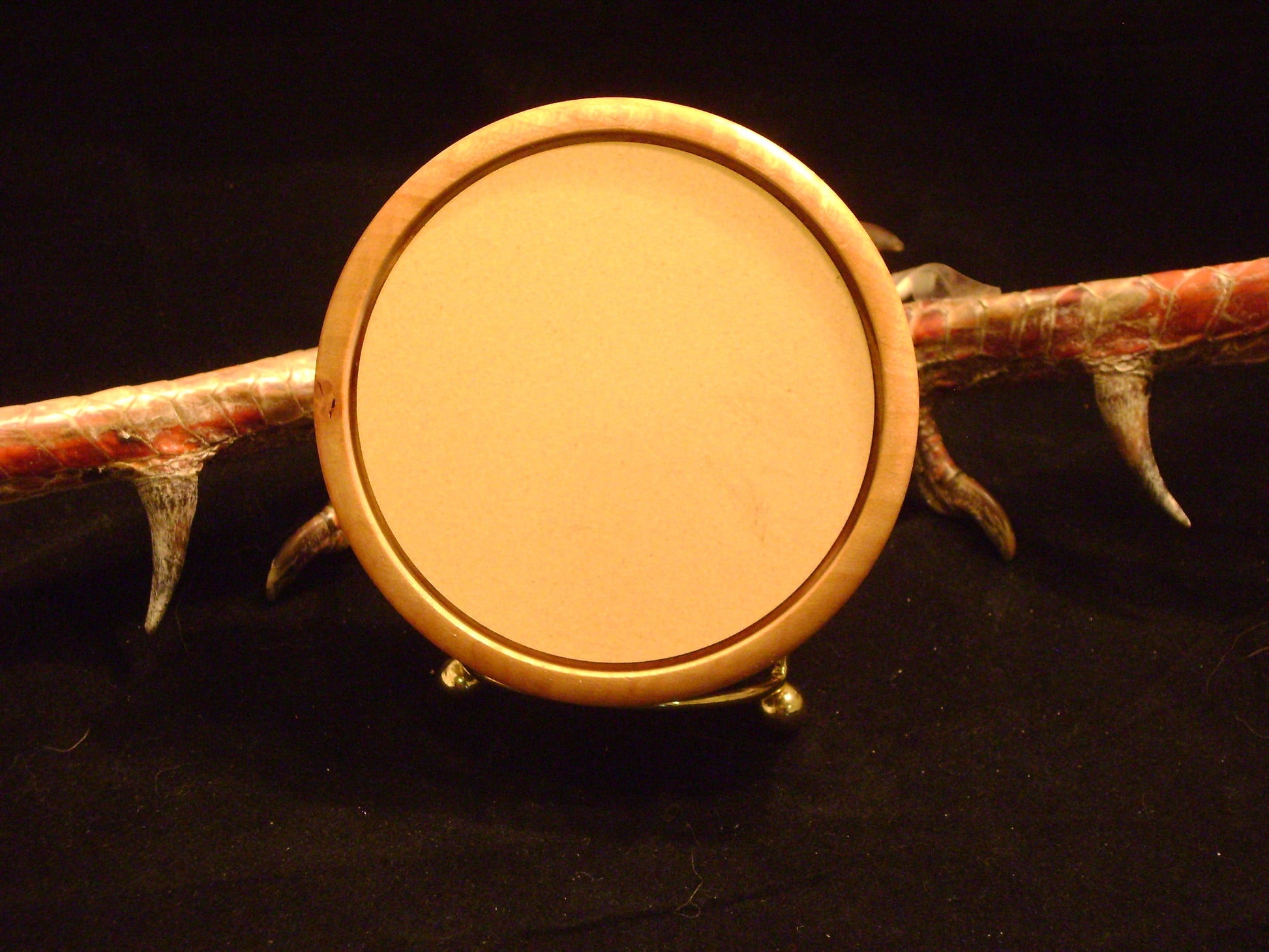 3.5" Ceramic playing surface with a glass sound board. This call is in a Curly Maple pot. Yelps roll over very nicely on this call. Yelps are sharp and crisp as are the cutts. The ceramic playing surface gives just a bit different sound than a slate or glass. Good volume for open areas yet can be toned down for close calling or those calm days. Handcrafted striker and call bag are included.