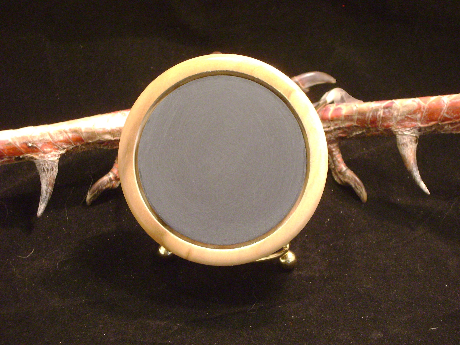 This is a 3" Slate Tree Talker in a Yellow Poplar pot. This call was designed with the hunter in mind. Creeping into the turkey woods in the early morning and then a close by Tom sounds off. It is very hard to refrain from grabbing your favorite call and answering him. So many times you do that and so many times he bails out the other side of the tree he is roosted in. My key to calling to birds on the roost and having them come my way has been this little call. Quiet cutts, purrs, and morning clucks are easy to produce with this call. Just work this call with little pressure and it will mimic the sounds of a roosted hen. I make this call in several different woods and in two sizes 3" and 3.25". The 3.25" call has a little lower pitch. When loud calling is not needed use this call. On quiet days use this call for some low volume yelps by working the the call a little harder with your handcrafted striker which is included along with a call bag.