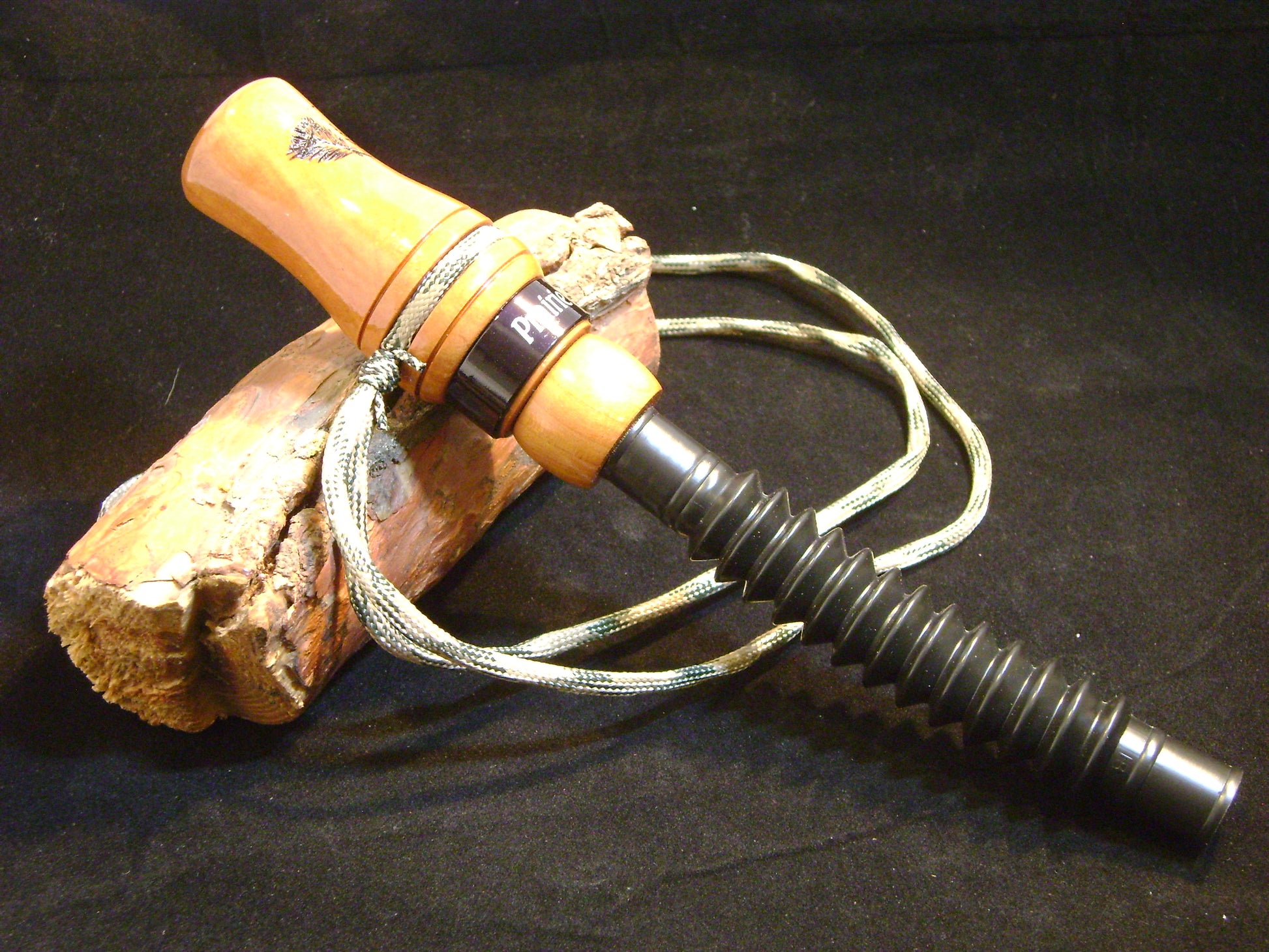 This is a Wild Cherry Fawn Distress call. Tone board is fitted with a o-ring so you can adjust the pitch of the call. Fully adjustable tube exhaust will also change the tone from high to lower pitch. All predators will respond to this type of call. Use this call as a fawn bleat call by using short burst of air thru the call. Use as a distress call as if a fawn is in trouble by making the notes longer and add some urgency to the calls. I have called in Whitetail Doe's in the early part of bow season with this and using the distress mode of calling. Lanyard and call bag included.