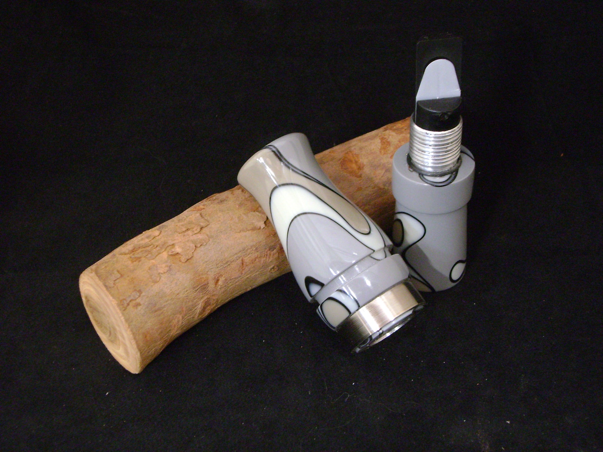 This is a all Acrylic goose call. The call barrel is made of Gray Camo Acrylic and the exhaust is also gray camo acrylic. These calls are meticulously hand tuned. This call has good volume and a medium pitch and easy to run with a set of clucker style guts. Insert has a aluminum screw fitting with a rubber O-ring to assure no air leakage. Can be adjusted to the way you personally run a call however my tuning process involves shaving the reed down. Extra reeds are available for additional cost. Features a brushed SST band. Includes call bag