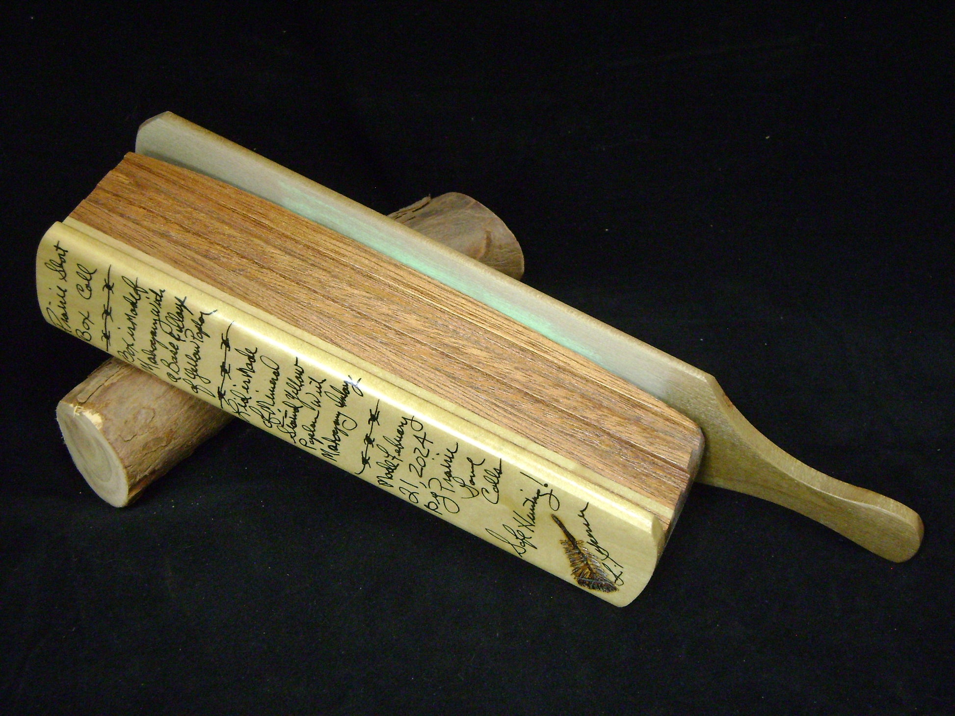 This is a Short Box Call measuring 10" in total length. Box is made from Mahogany that I purchased from the Estate of Black Duck Game Calls. This wood has outstanding looks and a slight ribbon effect to the grain of the wood. Box is made of Mahogany with a base of Yellow Poplar wood and inlays of Yellow Poplar wood. Lid is made of Mineral stained Yellow Poplar heart wood with Mahogany and Mother of Pearl inlays. Starts off with a medium pitch and roll overs quickly with nice clear notes. Raspy notes can be heard on the lower pitch notes. This call has good volume and will carry well on a windy day or on open fields. Great sounding yelps, clucks, purrs, and cutts. Call bag and chalk included.
